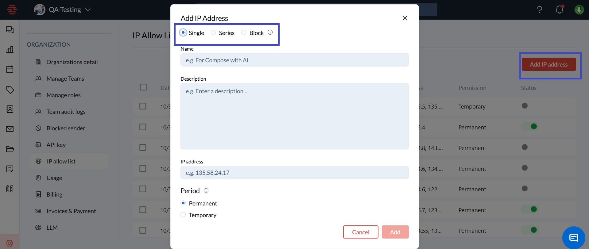 The IP Allow List feature in Zeninbox provides a way to control access to your organization’s data by allowing only specified IP addresses to access Zeninbox. This feature ensures that only users connecting from trusted networks can access your organization’s resources, enhancing security and reducing the risk of unauthorized access.
