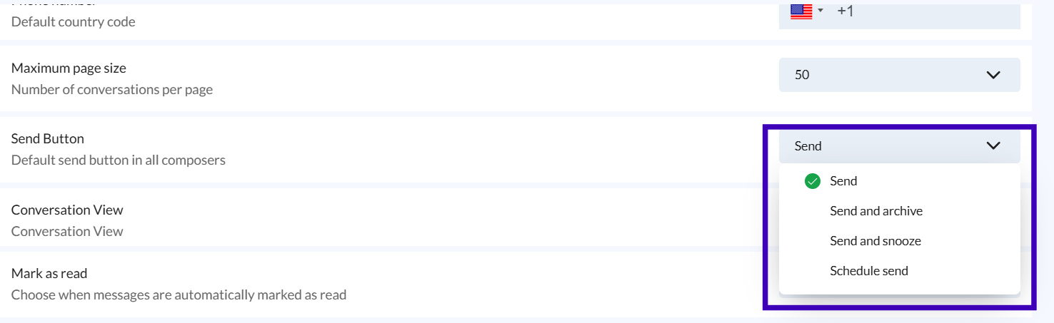 You can choose the send button's default behavior, such as "Send" or "Send & Archive."