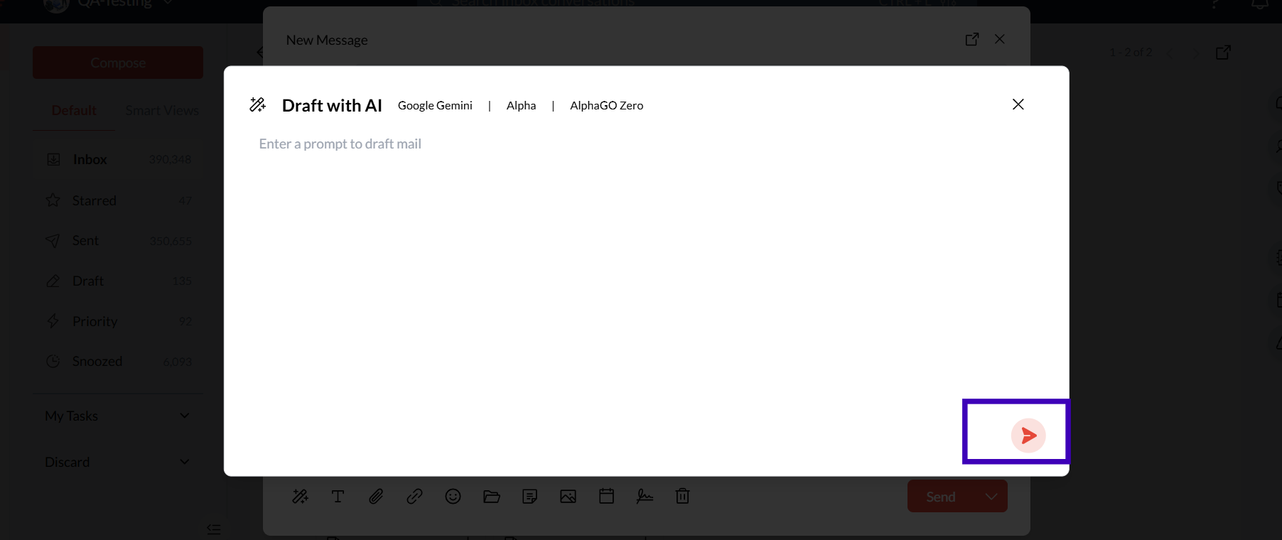 Click the Generate button (red arrow icon) to create a draft based on your prompt. The AI will process your input and produce a draft email.