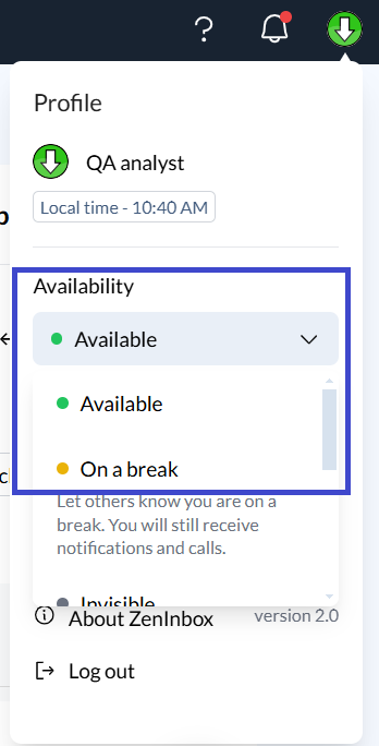The Profile menu in Zeninbox offers a convenient way to manage your availability, stay connected with updates, and access account-related information. If you need more help, feel free to contact Zeninbox support.
