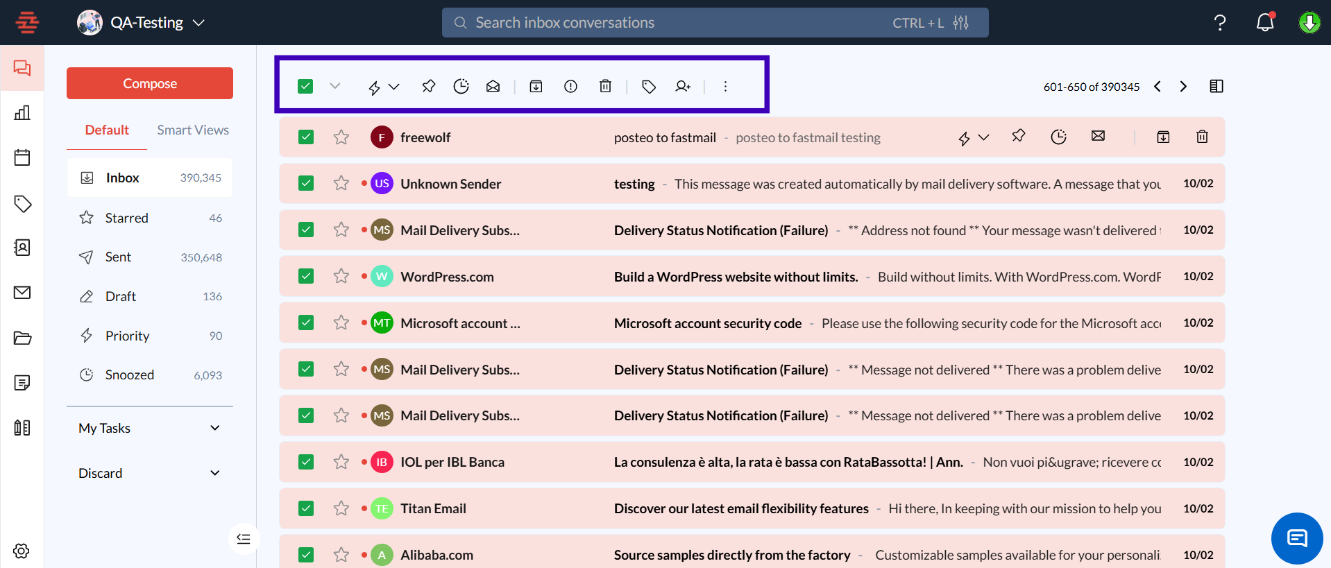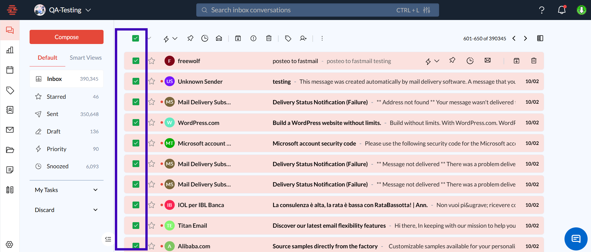 Open Your Inbox: Navigate to the inbox where you want to perform a bulk action.