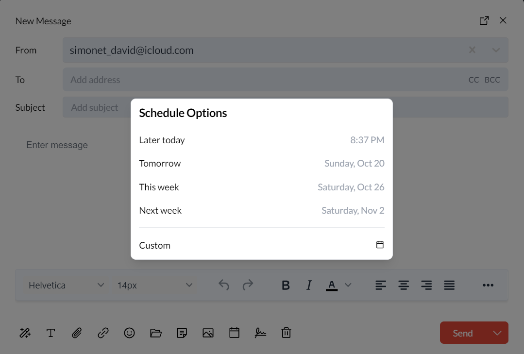 Schedule emails to be sent at a future date and time, perfect for reaching recipients at their optimal time or managing different time zones.Send & Archive