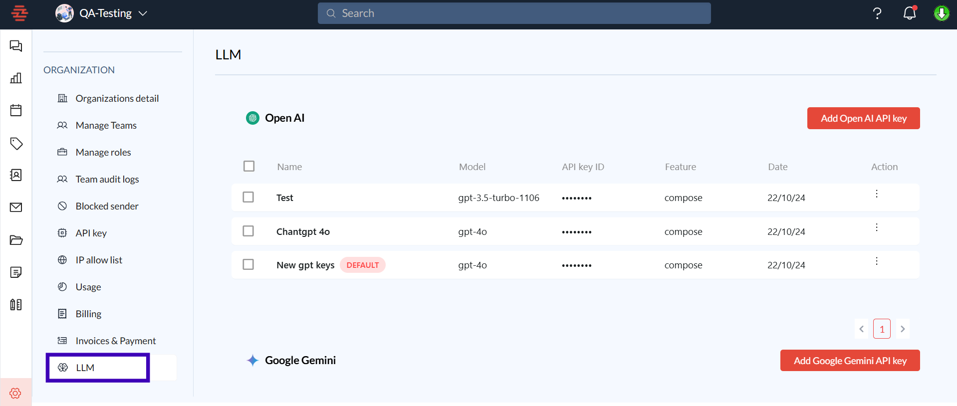 Click on "Add" next to your chosen LLM provider.