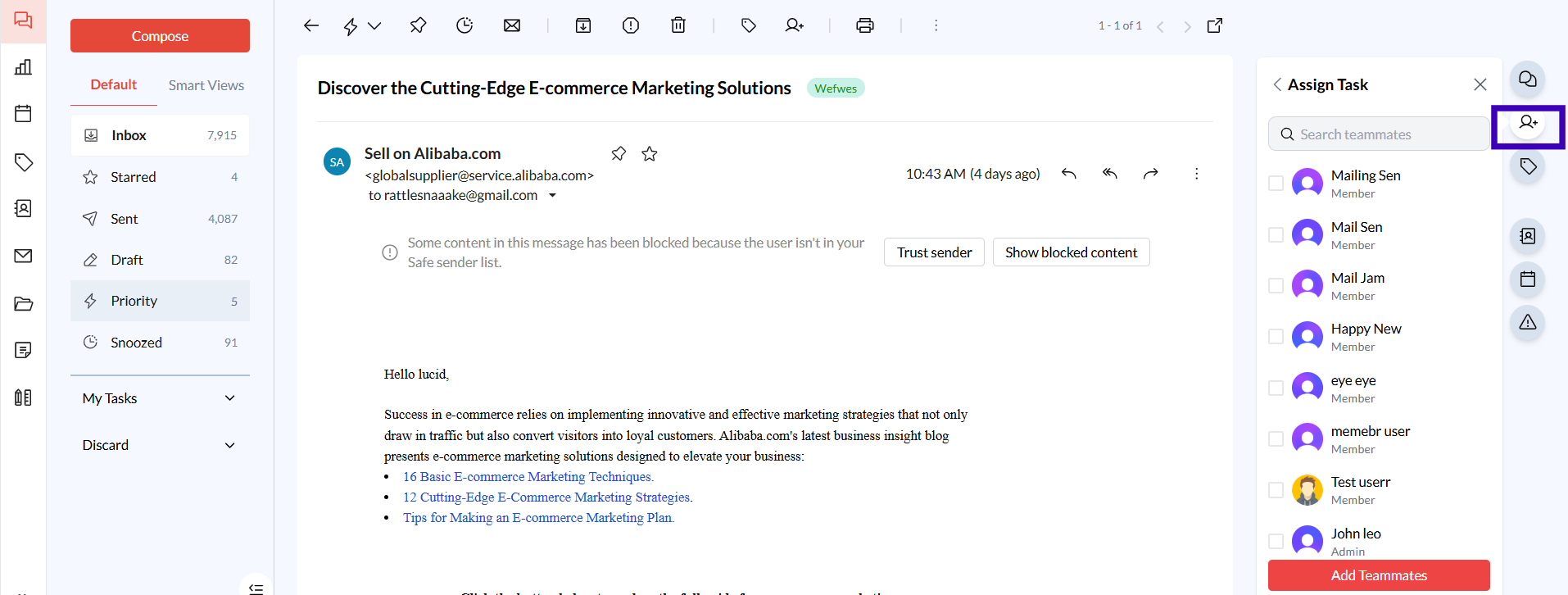 Conversation Assignment: Assign specific email threads to team members, ensuring clear ownership and accountability for follow-ups.