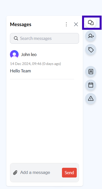 Send the Message: Click “Send” to post your internal comment. All messages will remain visible to your team but hidden from external recipients.
