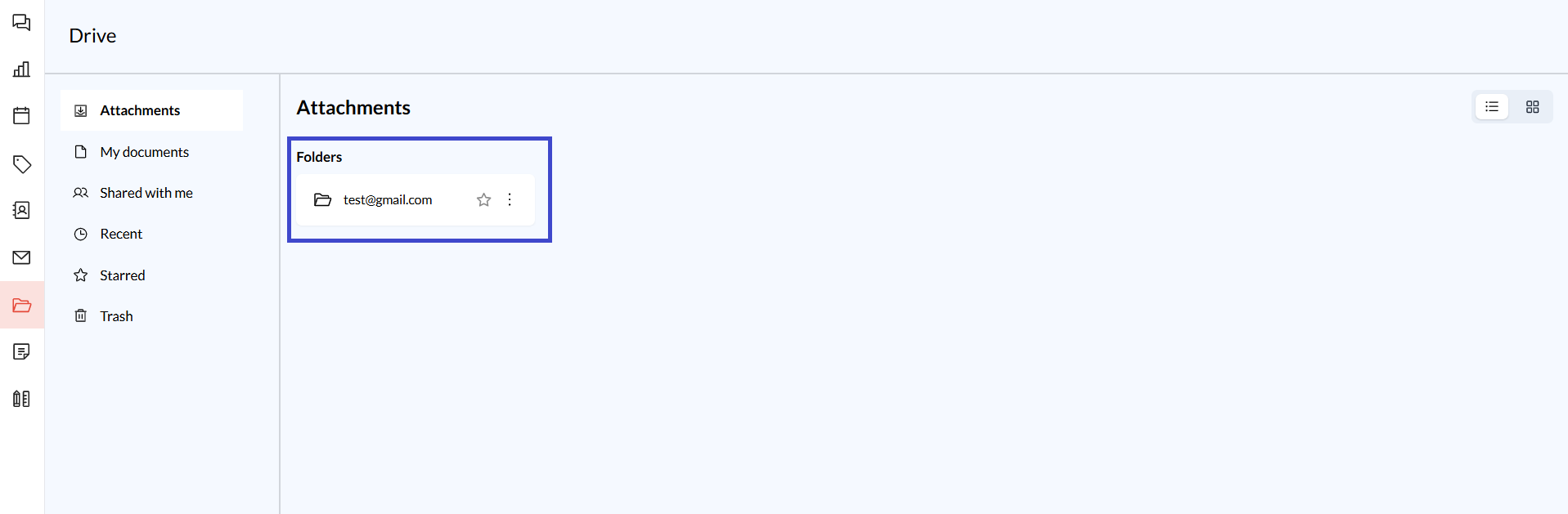 Open a Folder: Click on a mailbox folder to view attachments saved under that specific account.