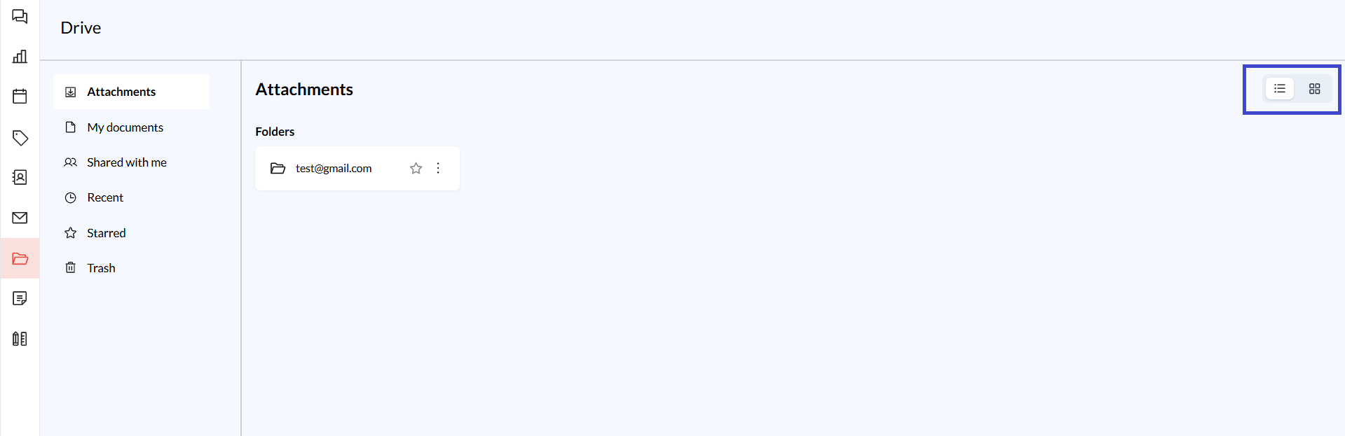 Navigate to Drive: On the left sidebar of Zeninbox, click on the Drive icon