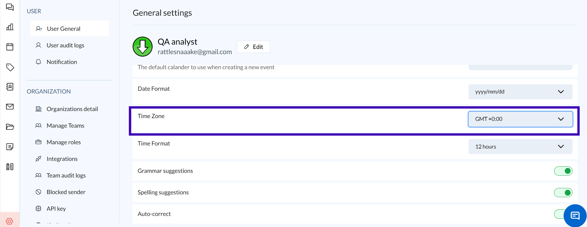 Zeninbox automatically adjusts the timestamp format based on your time zone settings. However, date formats may vary depending on your location settings.