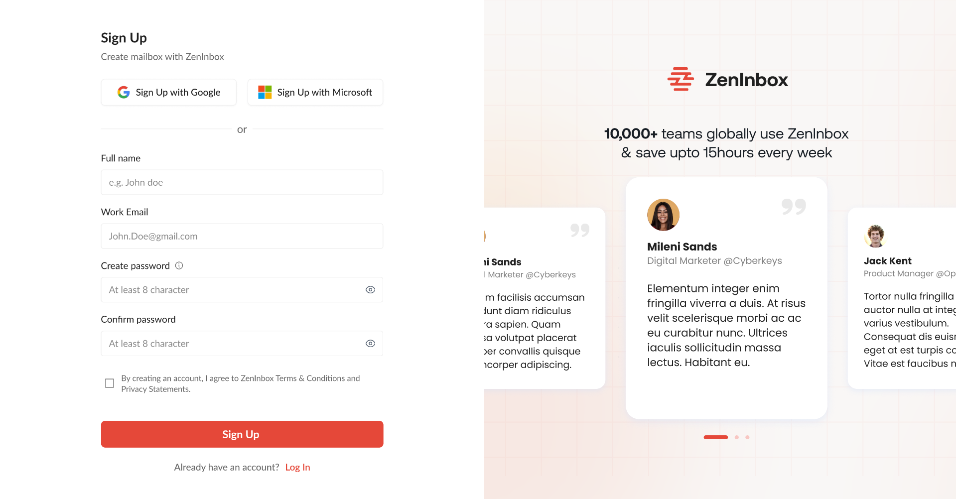Enter Your Information: Provide your name, email address, and create a password. You can also sign up using your Google or Microsoft account.