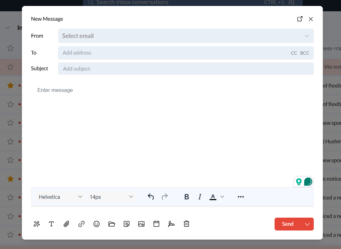 Log in to your Zeninbox account and click on the Compose button to start a new email.