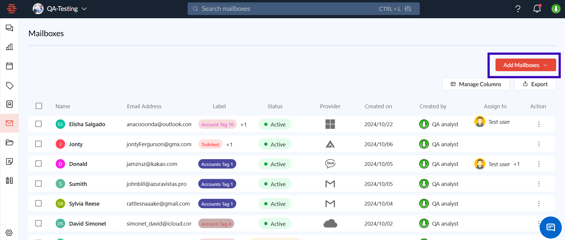 From the sidebar, click on the Mailboxes icon.