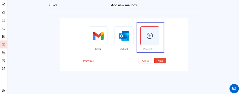 In the mailbox setup window, choose the IMAP/SMTP option to add Zoho Mail.