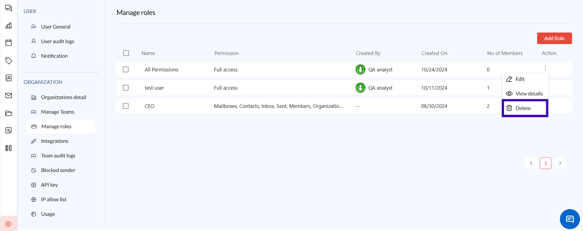 Edit Role: Adjust existing roles to update permissions or role names.