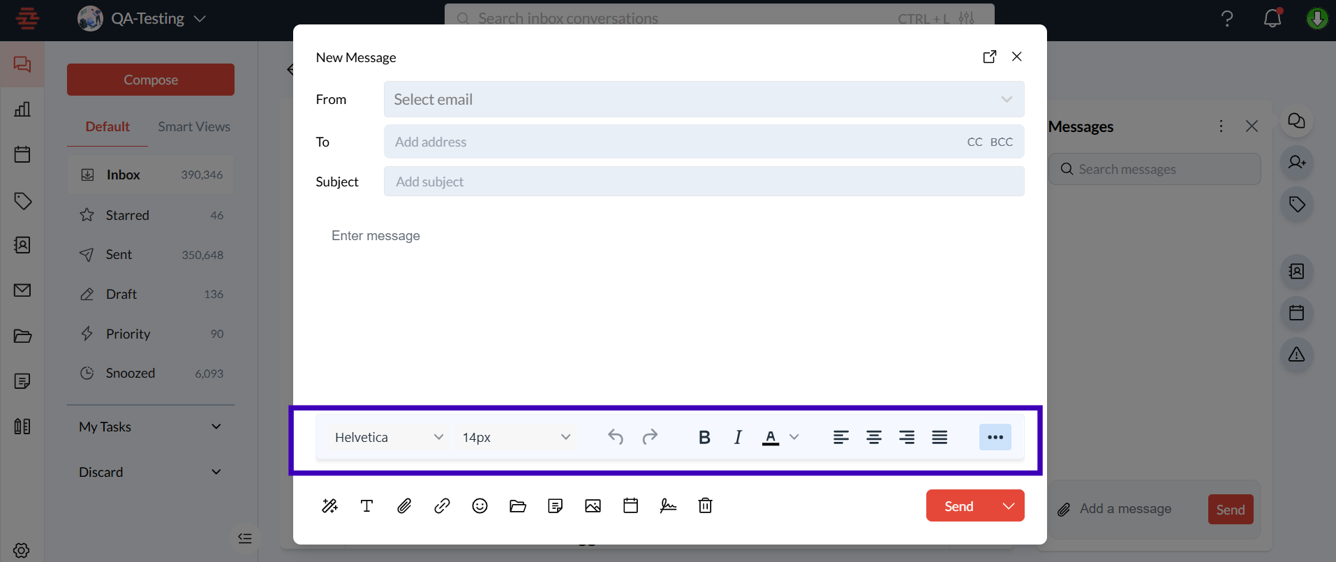 Start a New Email: Click on the “Compose” button at the top-left corner of your Zeninbox interface.