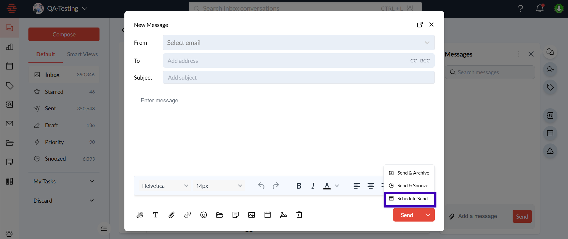 Schedule or Send: Click “Send” to send immediately, or use the drop-down menu to select “Schedule Send” if you want to set a specific time for sending.