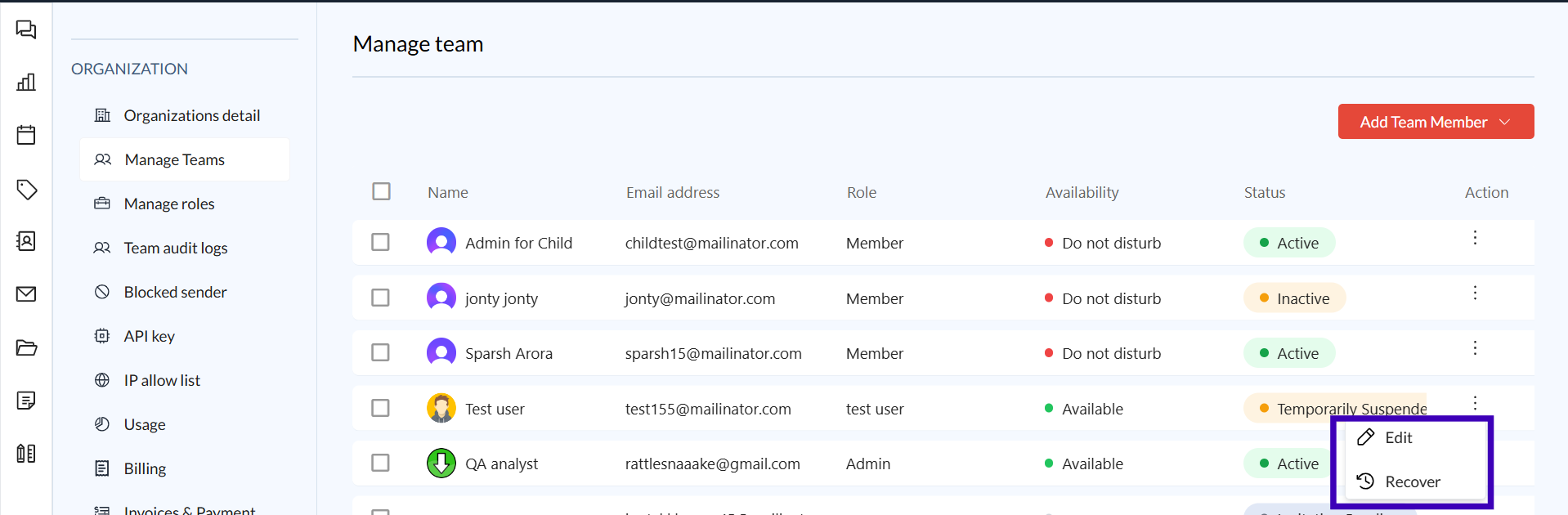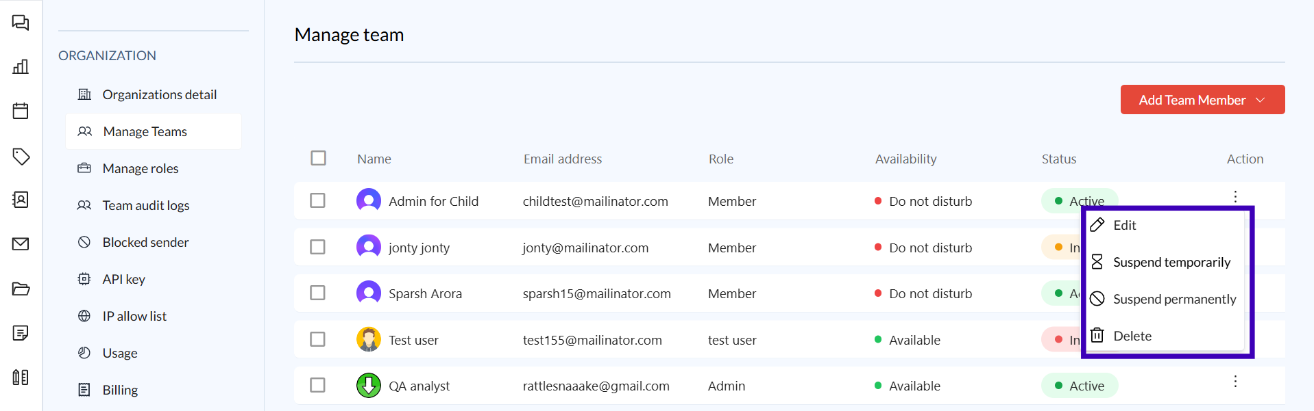 Manage Teams in Zeninbox allows administrators to organize and oversee team members, adjust access levels, and monitor member status. This feature ensures a well-structured team environment, enhancing collaboration and maintaining secure access to resources within the organization.
