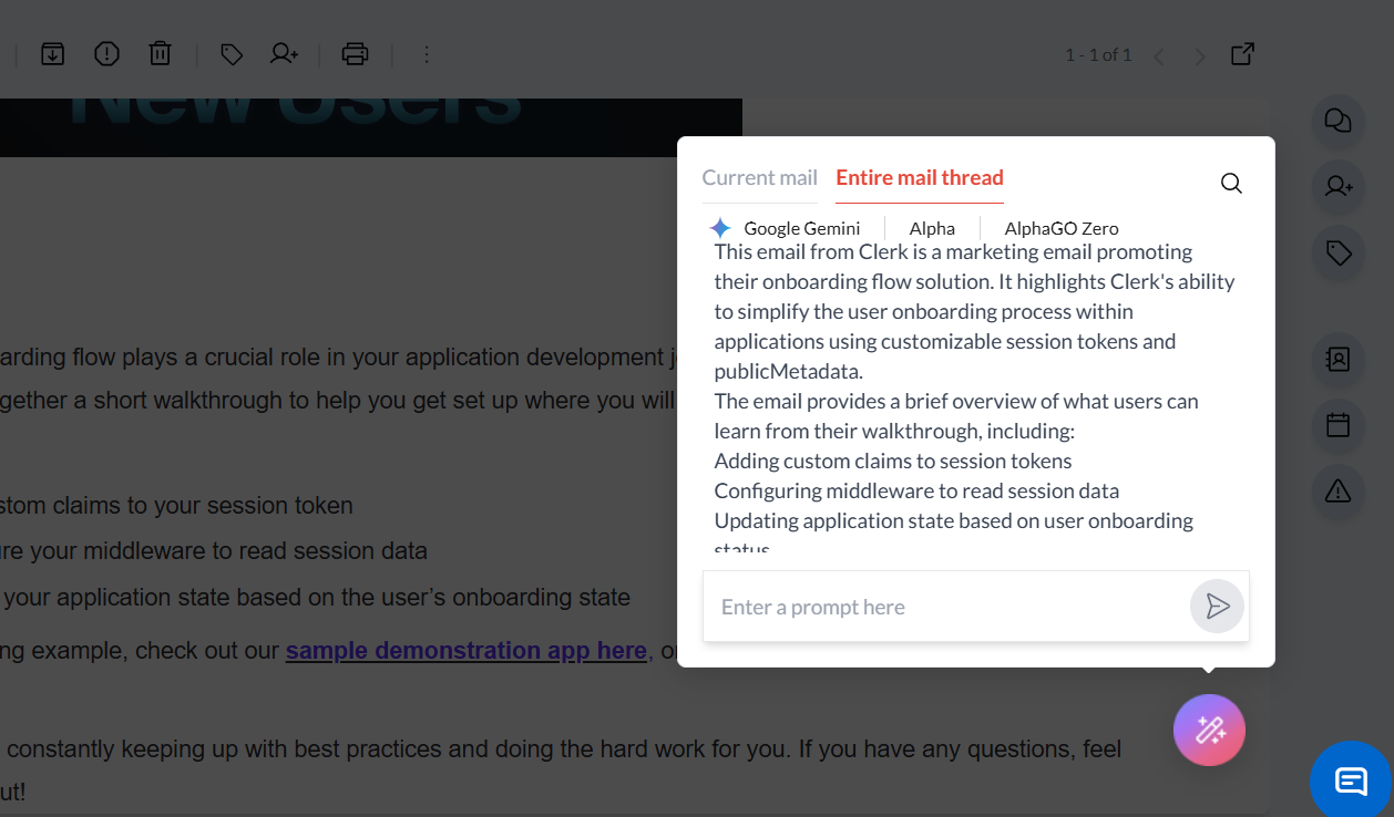 The AI Summarize feature in Zeninbox helps you keep track of important conversations without the need to read every email in detail. By generating concise summaries, you can stay focused on your work and respond more efficiently.
